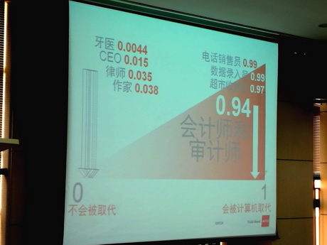 一是,ACCA的一份調(diào)查結(jié)果顯示,在可預(yù)見的未來,目前的常見職業(yè)中,94%的會(huì)計(jì)師和審計(jì)師崗位將被計(jì)算機(jī)取代,僅次于電話銷售員(99%)、數(shù)據(jù)錄入員(99%)、超市收銀員(97%)。