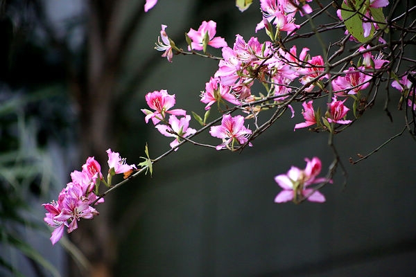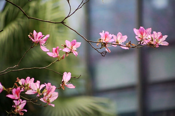 但是大自然按照規(guī)律正常運行,春天的腳步正在走近。桃花、梨花慢慢凋落后,櫻花、紫荊花在逐步綻放,春色正濃。柳州近年大力推廣紫荊花種植,每年三月中下旬,滿城紫荊盛開,賞花游人如織,成為工業(yè)城市一張亮麗的名片。今年的氣候偏暖,花期提前,比往年的花勢稍遜,但也是姹紫嫣紅,讓人流連。和往年一樣,我拿相機在辦公樓附近,留下春天的印記。